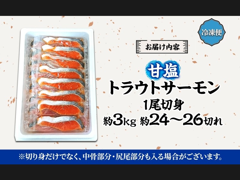 サイズ: 内容量:甘塩トラウトサーモン 1尾(約3kg 約24~26切れ)