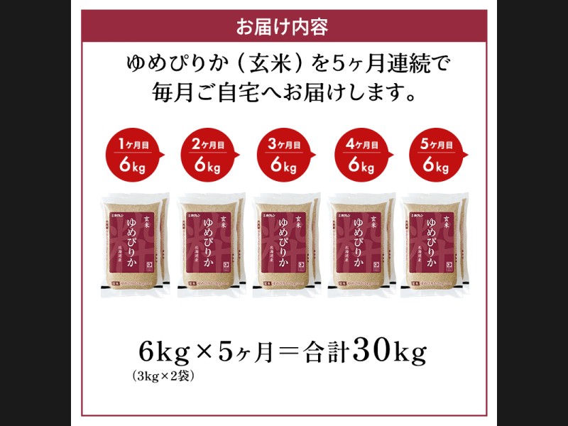 5ヵ月 定期便 ホクレンゆめぴりか(玄米6kg(3kg×2袋))ANA機内食採用 お米 米 ごはん 玄米 国産 北海...