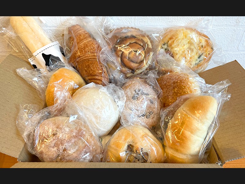 塩バターロール、メロンパン、ふらの牛乳のカスタードクリームパン、こしあんぱん、金時豆パン、牛肉カレーパン、モーモースティック、日替わりおやき、クロワッサン、クロワッサンショコラ、クロワッサンダマンド、クロワッサンショコラダマンド、くるくるフランク、ふんわりショコラ、プチフロマージュ、モーモースティック、あんバターサンド、ミルクッペ、牛乳パン、どうぶつパン、チョコ塩バターロール、金時豆塩バターロール、クロックムッシュ、くるみパン、くるみカマンベール、全粒粉入りプチパン、全粒粉入りくるみぶどう、全粒粉入りオレンジピールといちじく、大葉ハムチーズ、おさつパン、コーヒーロール、グラタンパン、その他期間限定商品の中からランダムで13個入ります。