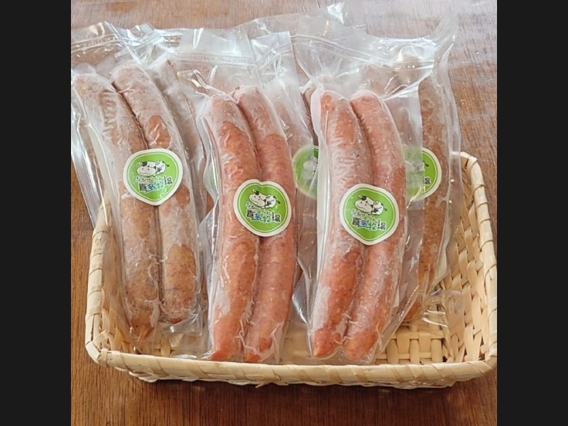 喜多牧場で大切に育てた牛とその初乳を沢山飲んで育った豚のお肉で作ったフランクフルトです。