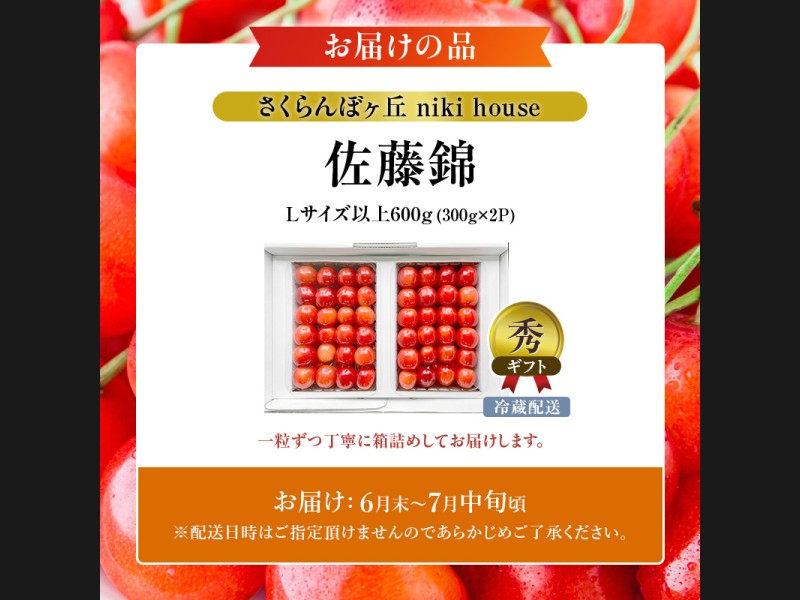 [先行受付] さくらんぼ 佐藤錦 さくらんぼ Lサイズ以上 600g(300g×2パック)化粧箱入 サクランボ チェ...