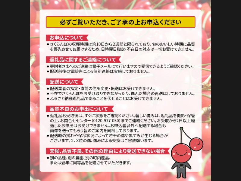 ※災害や天候の影響により収穫量が不足、または、品質を担保できない場合は、事前に連絡させていただきます。