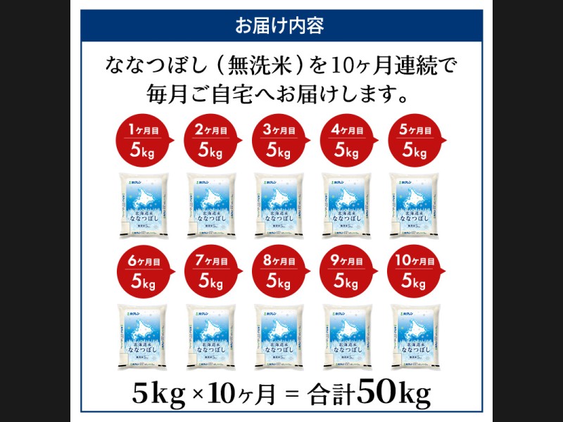 10ヵ月 定期便 ホクレン北海道ななつぼし(無洗米5kg) お米 米 ごはん 無洗米 白米 国産 北海道 こめ ...