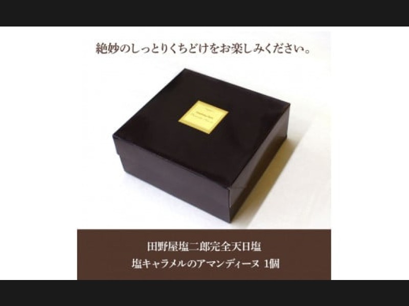 天日塩「田野屋塩二郎」を使って仕立てた濃厚な塩キャラメルと、トッピングにもケーキにも、贅沢に使用したアーモンドの味わいが特徴の、しっとりアマンディーヌです。膨張剤は一切使っておりません。小麦粉をほとんど使わず、アーモンドプードルをたっぷり使い、絶妙のしっとりくちどけに仕上げました。