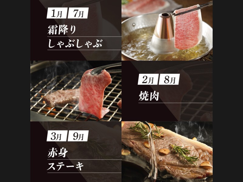 2月・8月【焼肉】:霜降り部位2種、赤身部位2種(各部位約120g)