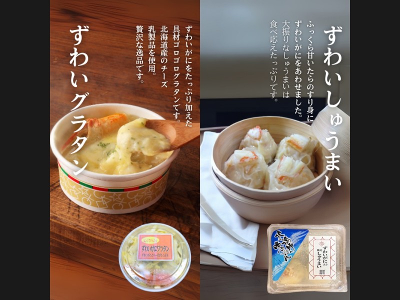 北海道で水揚げされるずわいがにを様々に加工しました。素材を活かした北の漁師の晩ごはんをコンセプトに、紋別の美味しいをお届けします。