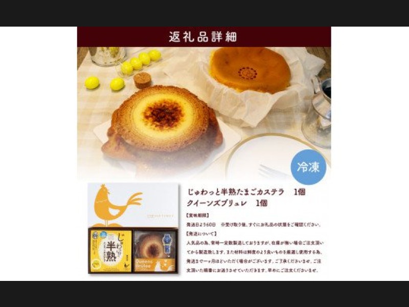 サイズ: 半熟たまごカステラ×1個、クイーンズブリュレ×1個