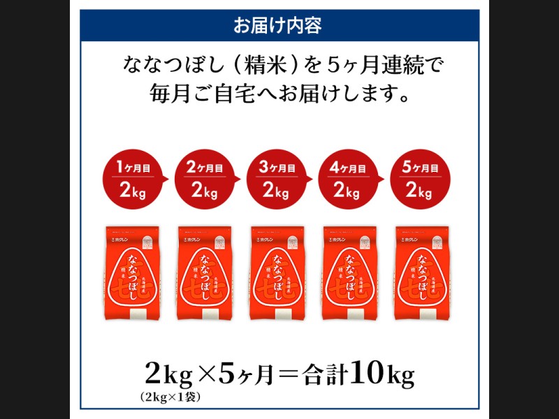サイズ: ホクレン喜ななつぼし精米2kg(2kg×1袋)を5ヵ月間お届けいたします。