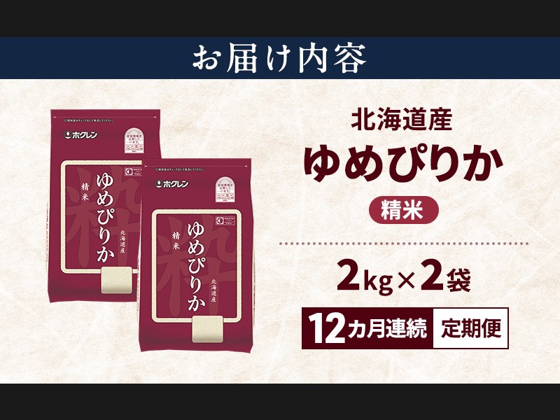 サイズ: ホクレン ゆめぴりか 精米 4kg(2kg×2袋)を12ヵ月連続で毎月10~20日にお届けします。