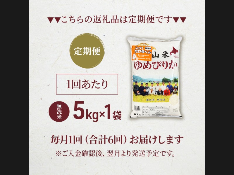6ヵ月 定期便 銀山米研究会の無洗米<ゆめぴりか>5kg×1袋【機内食に採用】 ライス 白米 精米 ブランド...