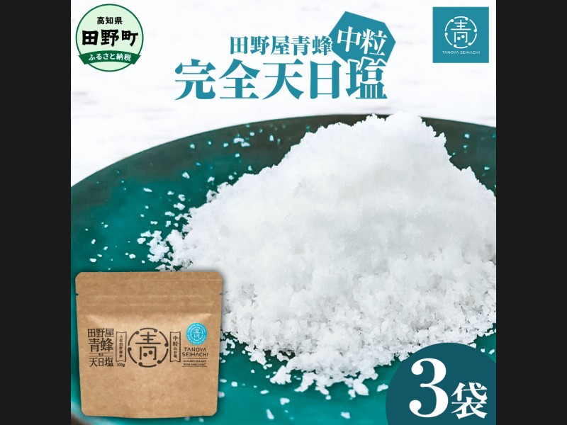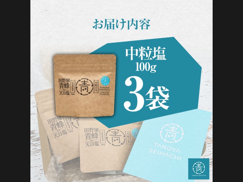 塩職人・田野屋青蜂が作る完全天日塩の中粒を3個セットにしました。