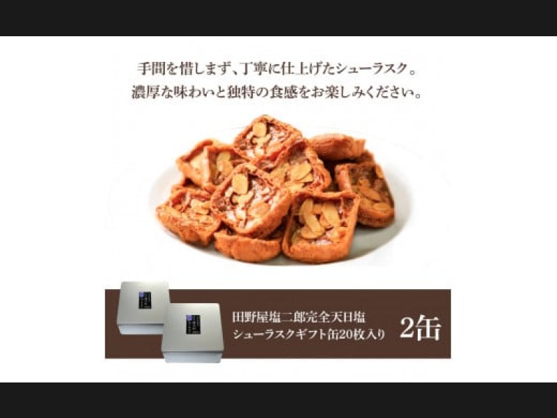 ★田野屋塩二郎完全天日塩★ シューラスクギフト缶 20枚入(2枚×10袋入)2缶セット 田野屋塩二郎 天日塩 ...