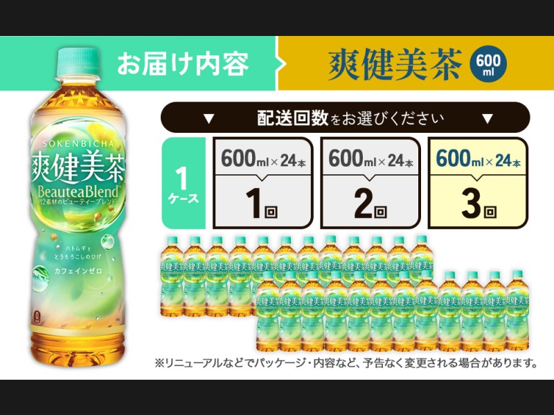 (3回定期便)爽健美茶 600ml PET【コカ・コーラ】ペットボトル 1ケース(24本) 定期便 3回(72本) セット...