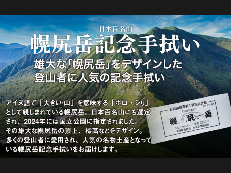 幌尻岳の登山のほか、日常でも汗を拭う際に使用し、雄大な幌尻岳を思い出してほしいです。