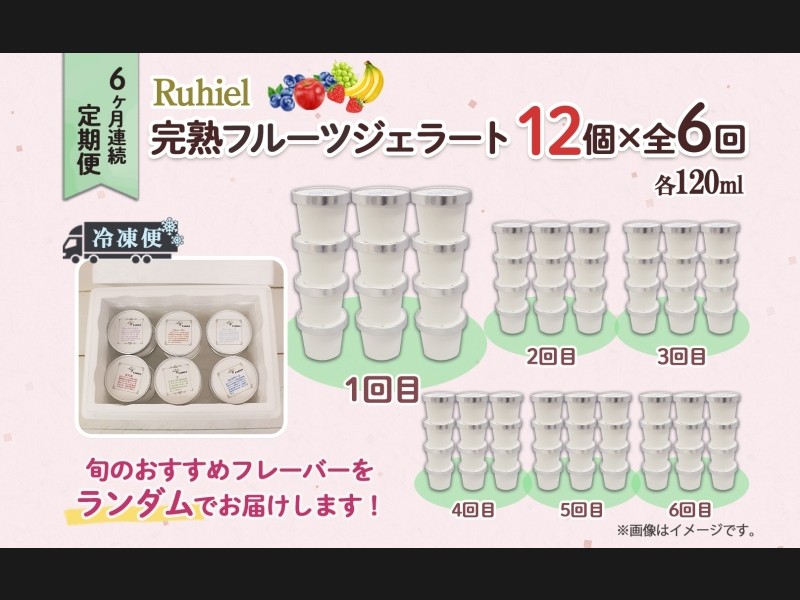 北海道 定期便 6ヶ月連続全6回 Ruhiel 完熟フルーツジェラート 12個 計72個 アイス 詰め合わせ ジェラー...