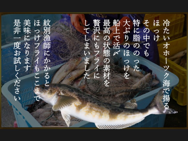紋別漁師食堂監修。一尾一尾船上活〆をした大ぶりのホッケのみ使用しました。