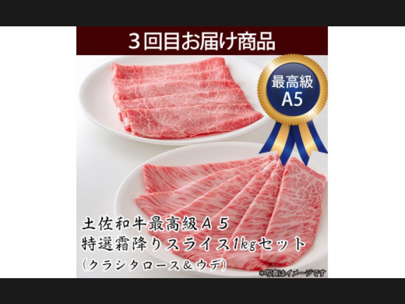3回目「土佐和牛最高級A5特選霜降りスライス1kgセット(クラシタロース&ウデ)」