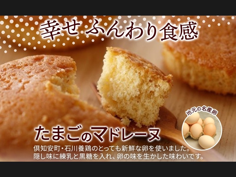 「たまごのマドレーヌ」は、倶知安・石川養鶏の卵を使用。