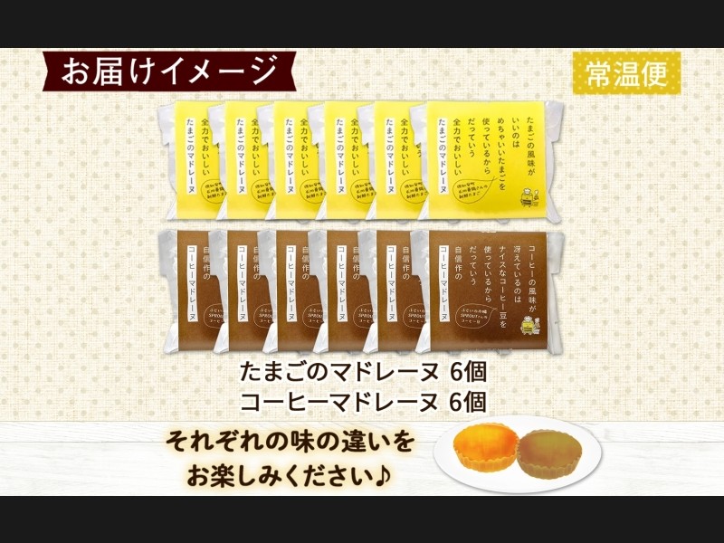 北海道 マドレーヌ 2種 詰め合わせ 計12個たまごのマドレーヌ コーヒーマドレーヌ 洋菓子 焼き菓子 おや...