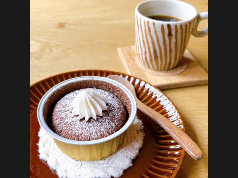 解凍後すぐに召し上がれるように、生クリームを添えたカップタイプをご用意しました。カカオ72%のオーガニッククーベルチュールチョコレートとココアを使用し、洋酒を効かせ、低温でしっとり焼き上げた大人のチョコレートケーキです。