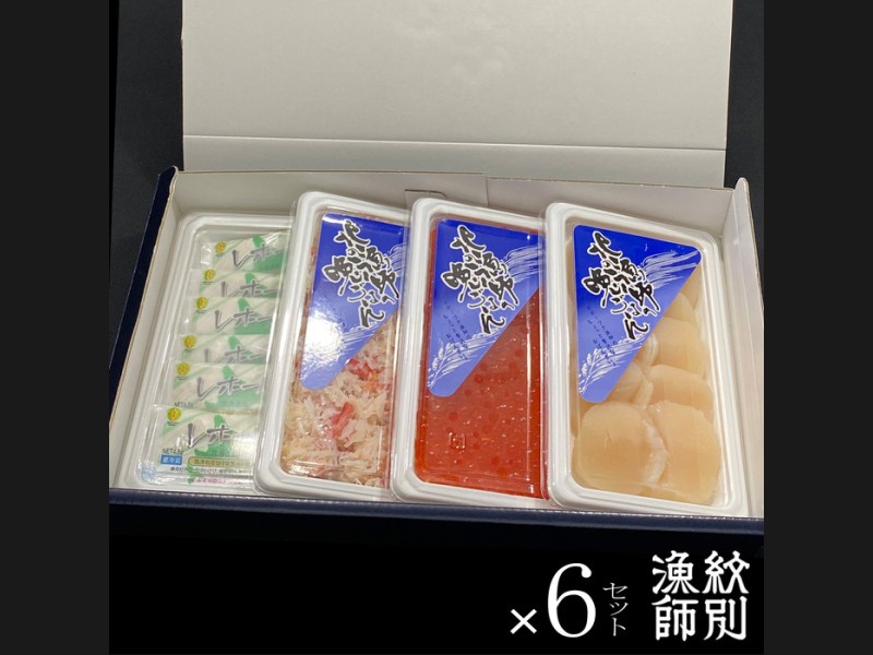 サイズ: ずわいほぐし身・帆立・いくら醤油漬(鱒) 各100g、山わさび4.5g×6袋(化粧箱入り) を6セット