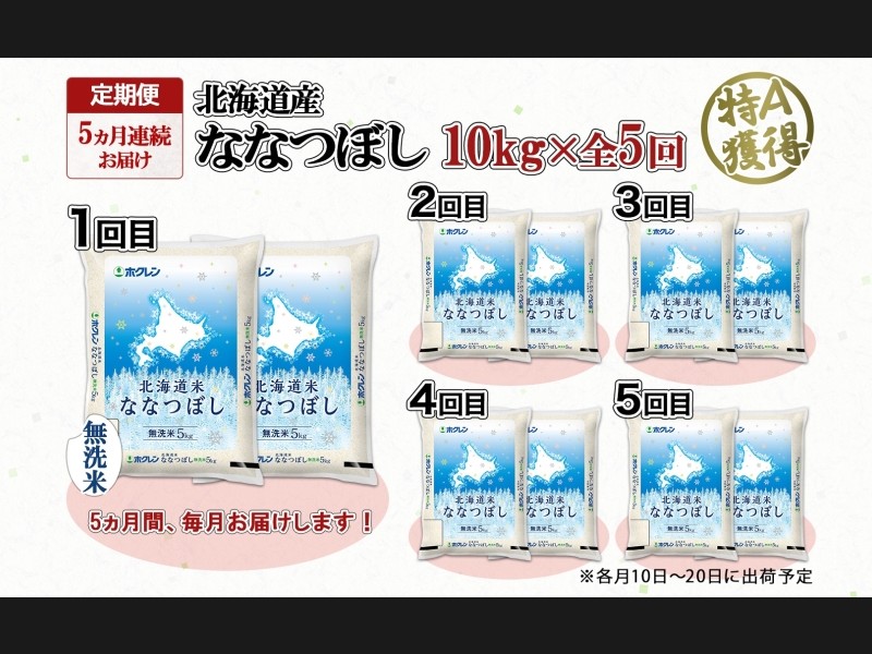 定期便 5ヵ月連続5回 北海道産 ななつぼし 無洗米 10kg 米 特A 白米 ごはん 道産米 ブランド米 10キロ 5...