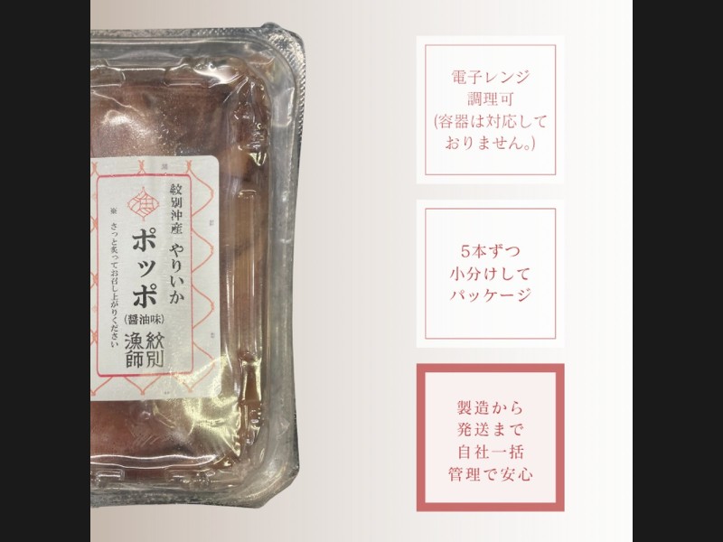 紋別で水揚げされたやりいかを柔らかく醤油漬にしました。