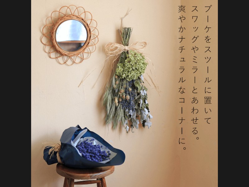 ●ドライフラワーですので若干お花が落ちます。軽く逆さに振って落ちそうな花を落としてから飾ると、落ちにくくなります。