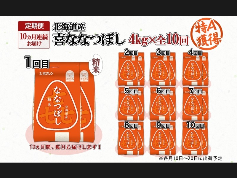定期便 10ヵ月連続10回 北海道産 喜ななつぼし 精米 4kg 米 特A 白米 ななつぼし ごはん ブランド米 4キ...