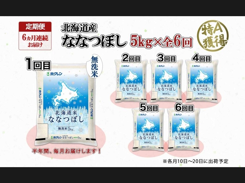 定期便 6ヵ月連続6回 北海道産 ななつぼし 無洗米 5kg 米 特A 白米 お取り寄せ ごはん 道産米 ブランド...