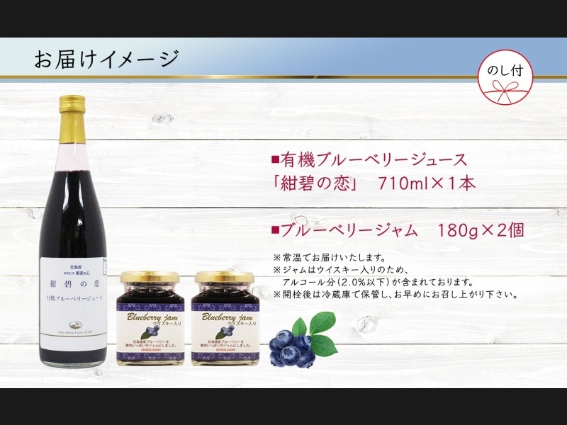 北海道産 ブルーベリージュース 710ml 1本 ブルーベリージャム 180g 2個セット 熨斗付き 果汁 100% ジュ...