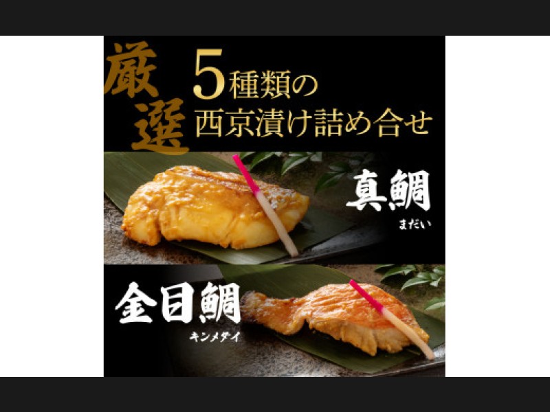 KYF131 西京漬け5種(真鯛・金目鯛・鰤・鯖・銀鮭)各60g×3切れ 食べ比べ タイ キンメダイ サケ ブリ ...