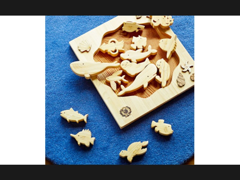 クジラ、イルカ、カメ、タコ、ちょっと珍しいウミスズメなど、愛らしい表情の15種類の海の生き物たちが木のパズルになりました。