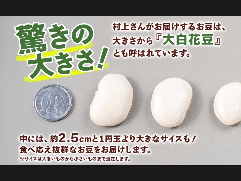 村上さんがお届けするお豆は、かなり大きさから『大白花豆』とも呼ばれ、