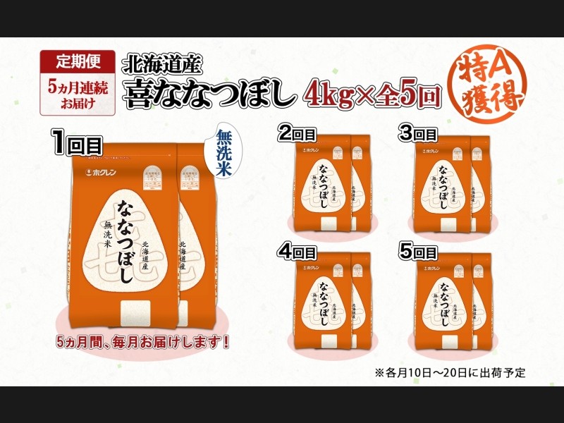 定期便 5ヵ月連続5回 北海道産 喜ななつぼし 無洗米 4kg 米 特A 白米 ななつぼし ごはん ブランド米 4キ...
