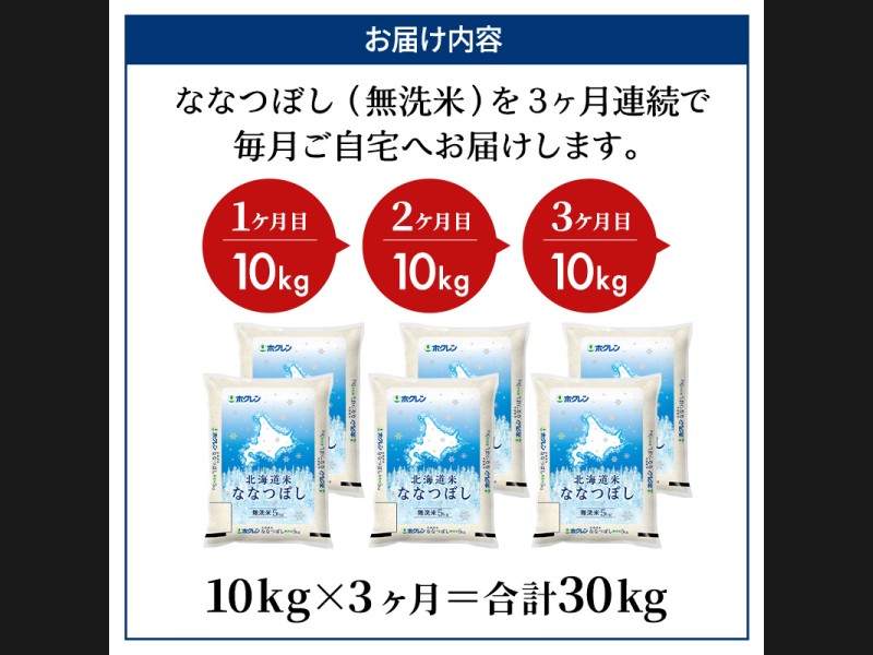 3ヵ月 定期便 ホクレン北海道ななつぼし(無洗米10kg(5kg×2袋)) お米 米 ごはん 無洗米 白米 国産 北...