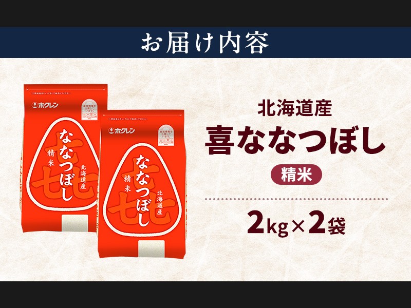 (精米)ホクレン喜ななつぼし4kg(2kg×2袋)をお届けします。