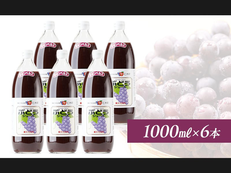 北海道仁木産ぶどうジュース(品種:キャンベルス):1000ml×6本 果汁飲料 野菜飲料 ブドウ ぶどう ジュ...