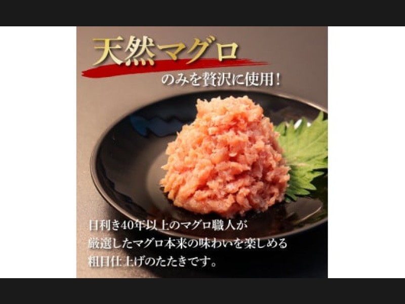 目利き40年以上のマグロ職人が厳選したマグロ本来の味わいを楽しめる粗目仕上げのたたきです。