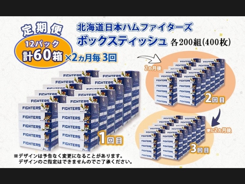 定期便 2ヵ月毎 全3回 北海道日本ハムファイターズ ボックスティッシュ 200組 60箱 日本製 まとめ買い ...