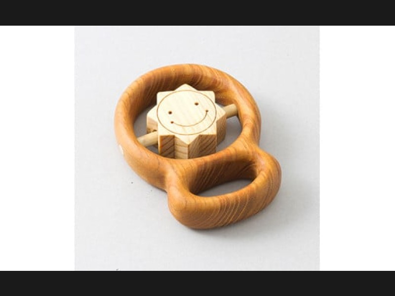 角をまぁるく磨いた「つみ木」9個と「歯がため」2個、振るとおひさまが動く「カタカタ」1個、転がせば音が鳴って楽しい「コロコロ」がセットになりました。