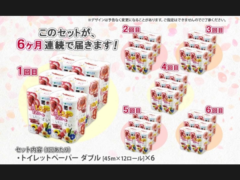 サイズ: 内容量:12ロール×6パック(計72ロール)を6ヵ月連続全6回お届け(合計432ロール)