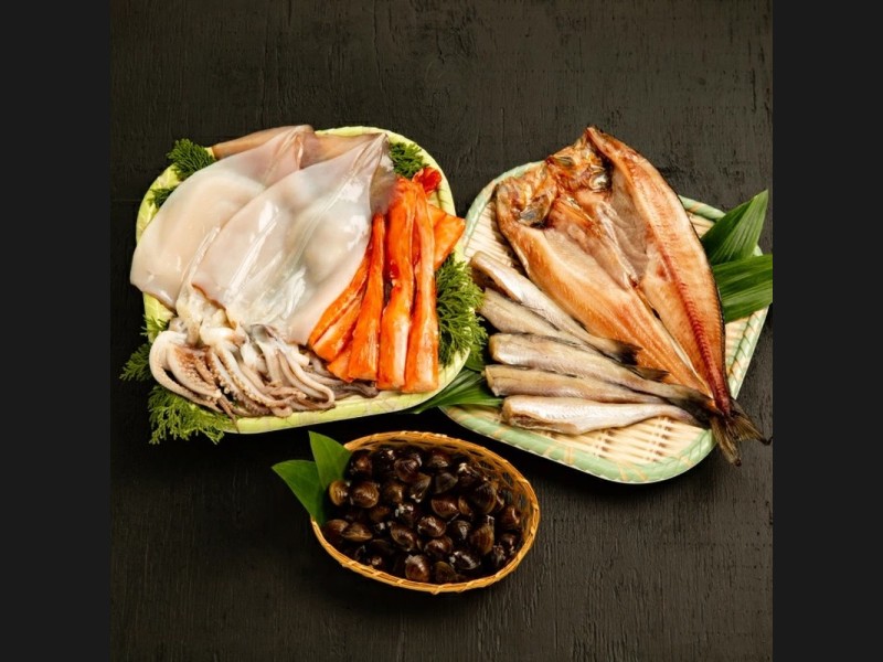 流氷がはぐくむ豊かな海で、毛ガニ・ズワイガニ・タラバガニの三大ガニのほか、ホタテ、鮭などの豊富な魚介類を味わえます。