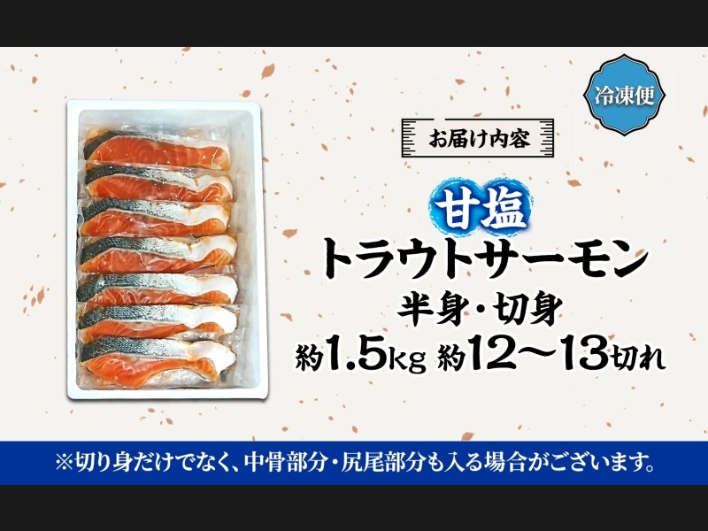 サイズ: 内容量:甘塩トラウトサーモン 半身(約1.5kg 約12~13切れ)