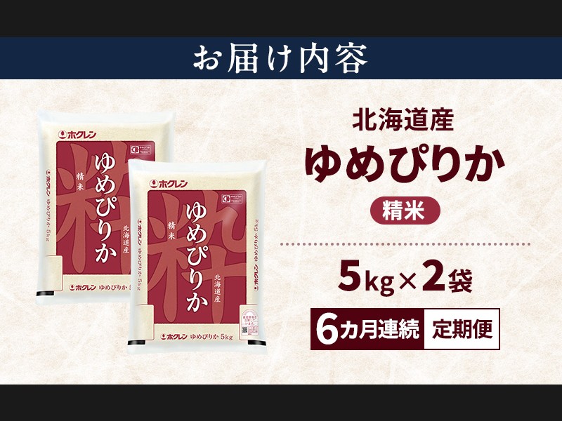 サイズ: ホクレン ゆめぴりか 精米 10kg(5kg×2袋)を6ヵ月連続で毎月10~20日にお届けします。