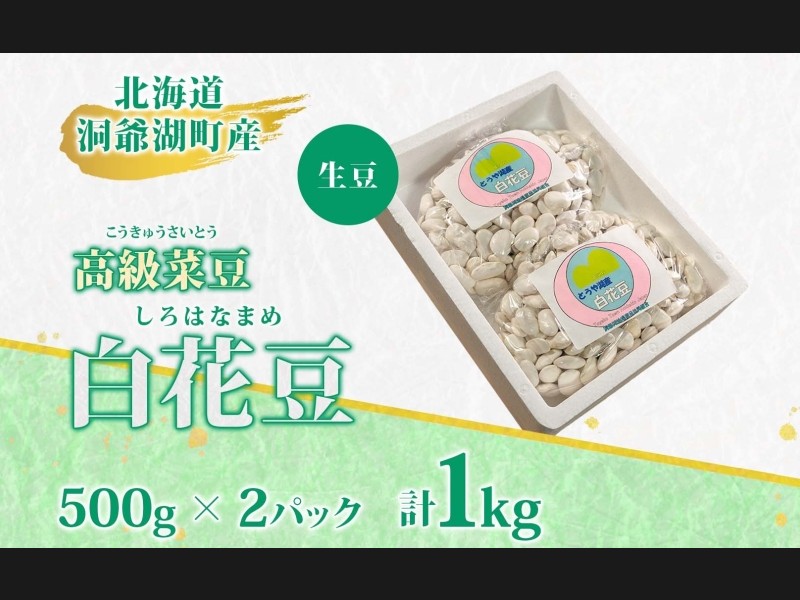 サイズ: 北海道・洞爺湖町産 高級菜豆の白花豆 1kg (500g×2袋)