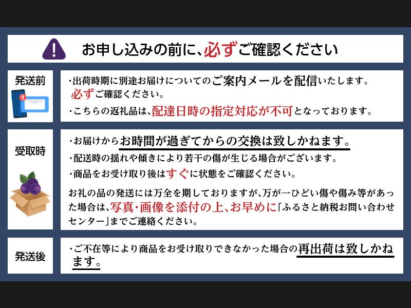 ※ご不在等により商品を受け取れなかった場合の再出荷は致しかねます。