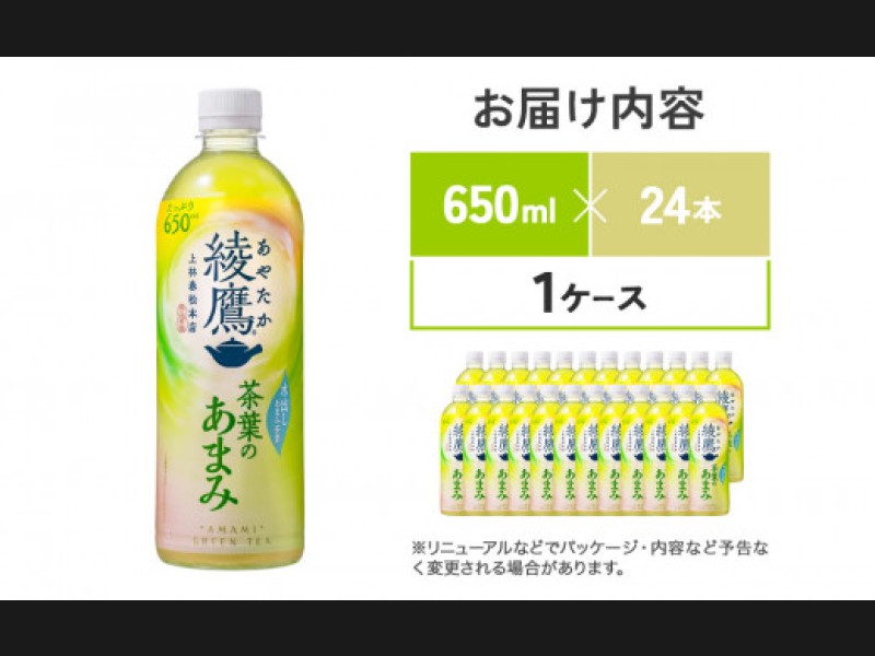 綾鷹 茶葉のあまみ 650mlPET×24本 1ケース 玉露 水出し ペットボトル お茶 緑茶 コカ・コーラ 送料無料