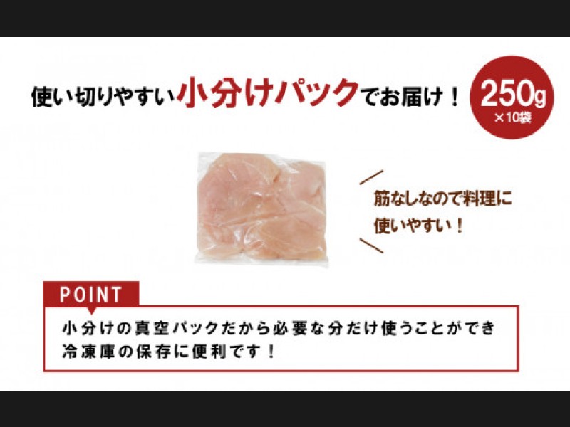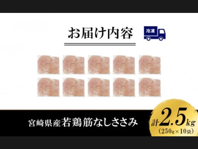 宮崎県産 若鶏筋なしささみ 2.5kgセット (250g×10袋) 鶏肉 ささみ 鶏ささみ 小分け 真空パック タンパク...