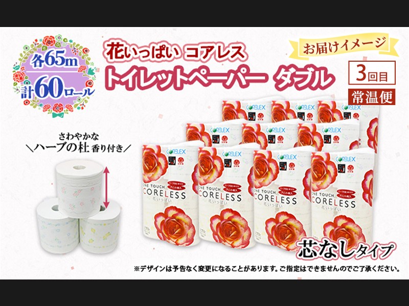 ワンタッチコアレス 花いっぱいトイレットペーパー(ダブル)計60ロールセット!